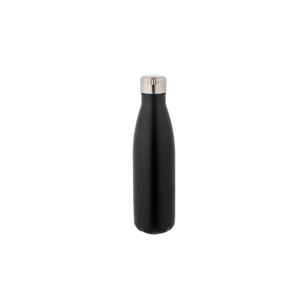 Botella de acero inoxidable con doble pared aislada al vacío, capacidad de hasta 510ml. Tapón estanco. Se suministra en una caja blanca. ø71 x 255 mm.