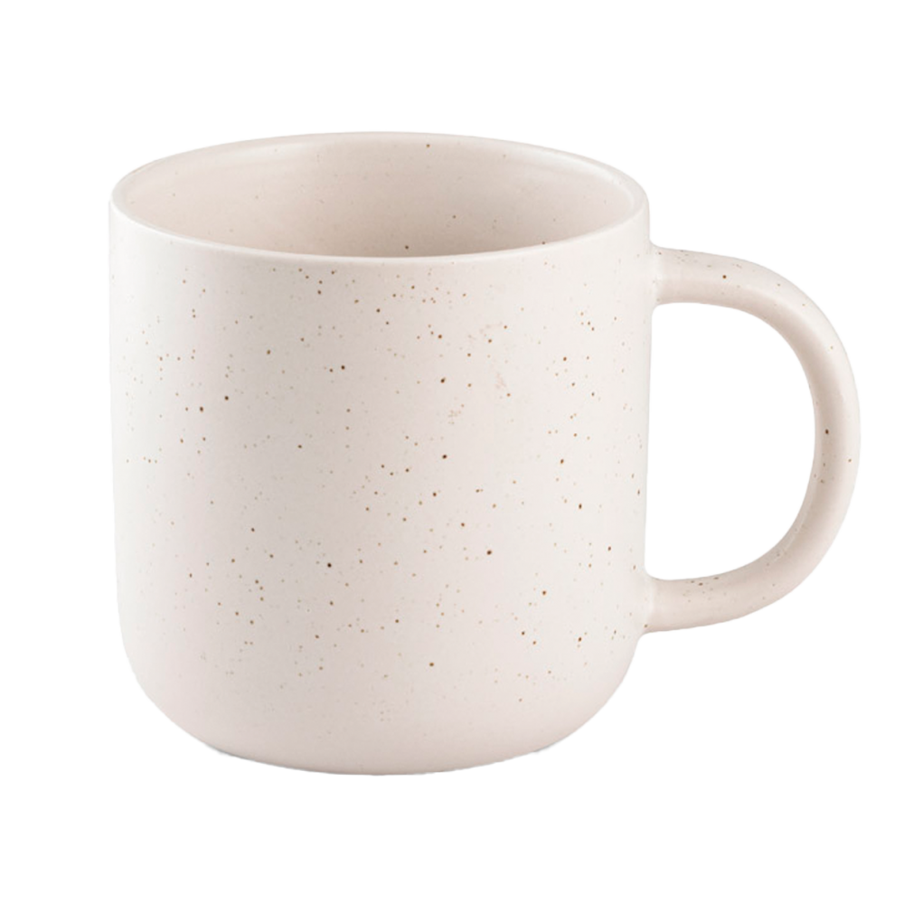 Taza de cerámica con acabado mate y exterior moteado. Capacidad hasta 370 ml. Se suministra en caja de regalo de papel kraft. ø85 x 85 mm.