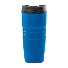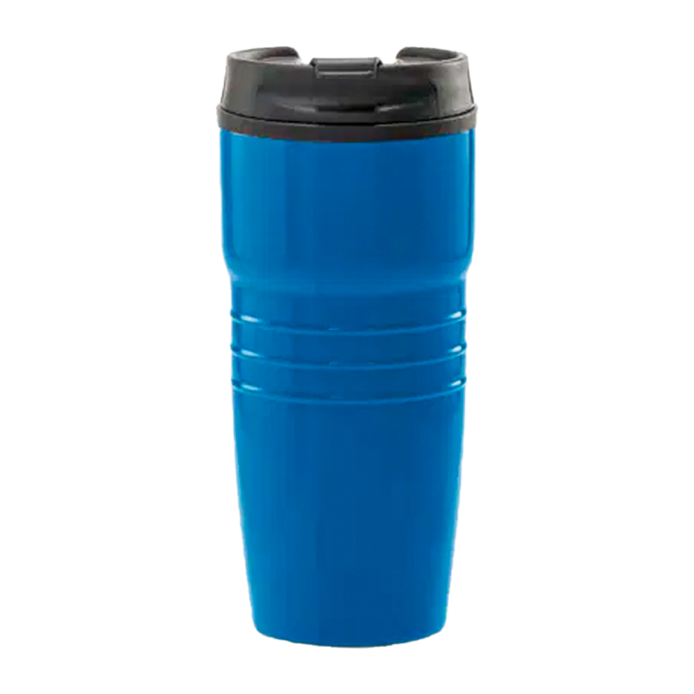 Vaso de viaje hecho en acero inoxidable y PP. Incluye doble pared, tapa y antideslizante en la base. Capacidad de hasta 520 ml. Suministrado en una caja. ø84 x 190 mm.